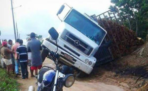 Há 9 anosConquista: Lama e buraqueira - Caminhão tomba em estrada da zona rural