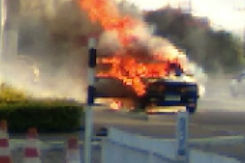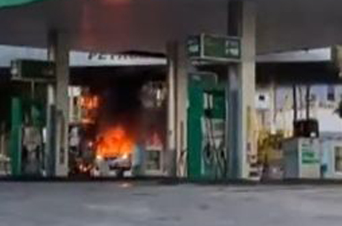 Perigo! Carro pega fogo em posto de combustíveis