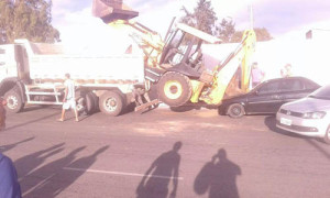 Há 10 anosConquista: Trator do PAC cai de caminhão e atinge carro em frente a cemitério