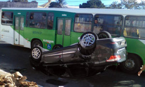 Conquista: Carro capota em acidente no Bairro Ibirapuera