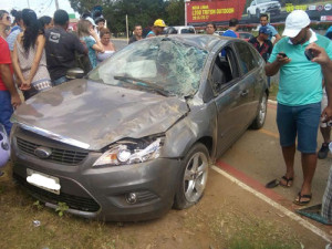 Conquista: Carro capota e casal fica ferido na Avenida Brumado