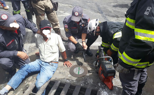 Há 8 anosConquista: Homem fica preso em 'boca de lobo' e é socorrido pelo Corpo de Bombeiros