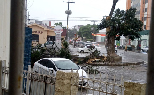 Há 8 anosConquista: Chuva arrasta carros, derruba árvores e causa transtornos; veja vídeo