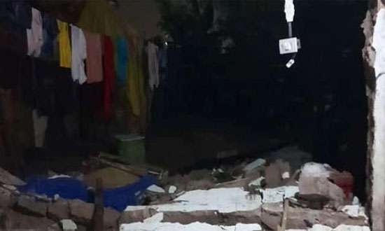 Uma casa no Bairro Campinhos, em Vitória da Conquista, teve uma de suas paredes destruída devido à forte chuva que...