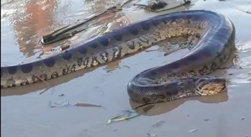 Uma sucuri foi capturada na beira da praia do distrito de Guaiú, no litoral Norte de Santa Cruz Cabrália, na...