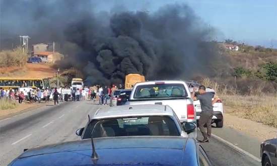 Um protesto bloqueou a estrada que liga Vitória da Conquista a Anagé, próximo do acesso a Lagoinha. Com queima de...