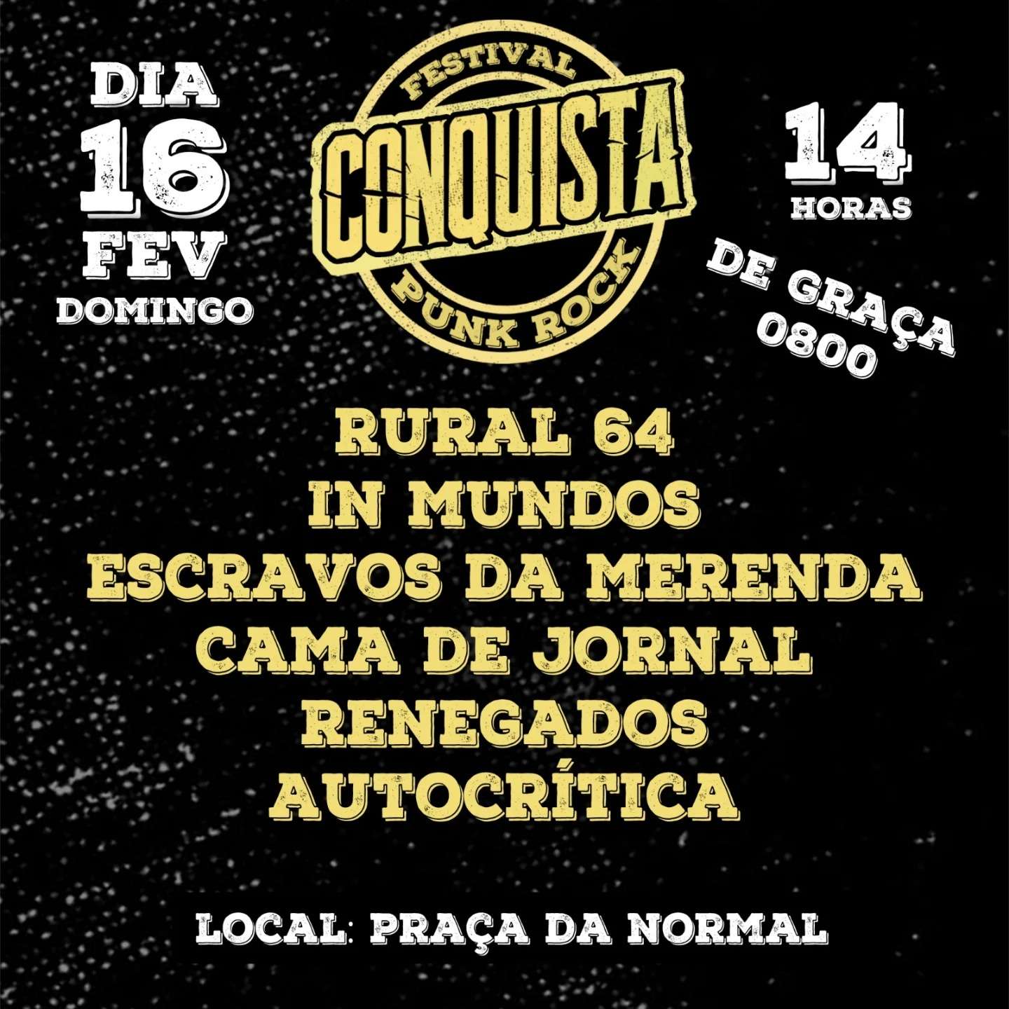 Por Allan Victor A primeira edição do Festival Conquista Punk Rock acontecerá neste domingo (16) às 14h na Praça Crésio...