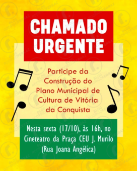 Há 1 semanaEncontro em busca de melhorias na área cultural de Vitória da Conquista acontece hoje na Praça CEU