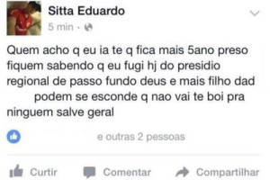 Um detento do Presídio Regional de Passo Fundo, no Rio Grande do Sul, comemorou no Facebook minutos depois de fugir,...