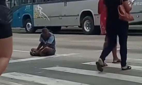 Uma cena triste na estação de transbordo Herzem Gusmão, um dos pontos mais movimentados de Vitória da Conquista. Um homem...