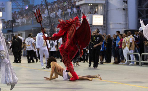 Fake News: HOMEM QUE FEZ PAPEL DE DIABO EM DESFILE DA GAVIÕES DA FIEL MORREU CARBONIZADO