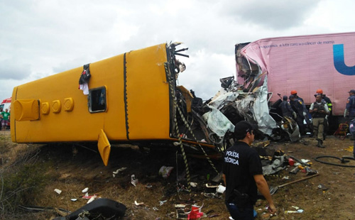 Há 3 anosBatida entre carreta e ônibus escolar deixa 3 mortos na BR-116; coletivo seguia para concurso de fanfarras