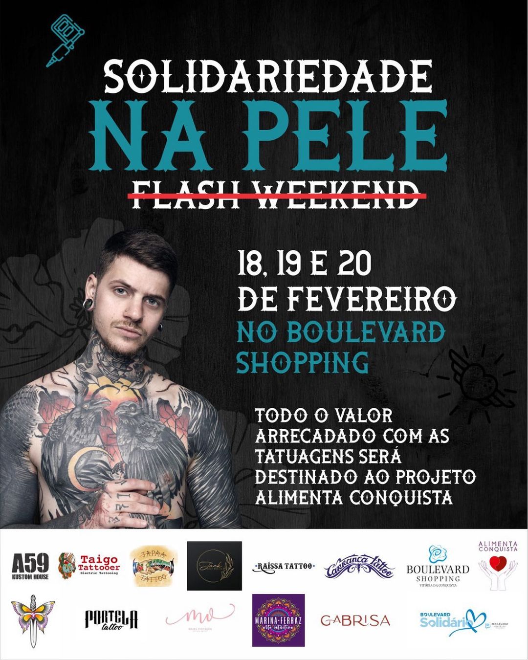 Com a proposta de reverter toda a receita líquida arrecadada para o projeto Alimenta Conquista, vários dos melhores tatuadores de Vitória...