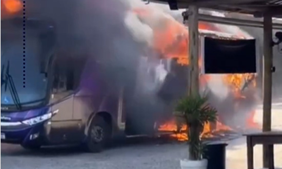 Neste sábado (26), o ônibus de uma banda de forró pegou fogo enquanto estava estacionado nas proximidades de um restaurante...