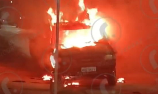 Um carro pegou fogo na noite desta segunda-feira (2), na Avenida Maranhão, no bairro Ibirapuera, em Vitória da Conquista. O...