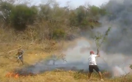 Há 8 anosConquista: Após final de campeonato, jogadores tentam apagar fogo na reserva do Poço Escuro; assista