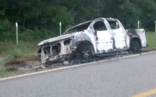 Há 8 anosRegião de Conquista: Caminhonete pega fogo às margens da BR-116