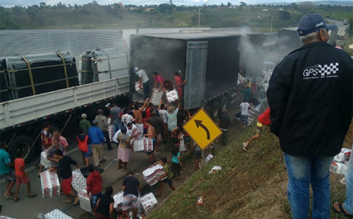 Há 7 anosAcidente grave na estrada Conquista-Planalto, carreta de papel higiênico pegou fogo; veja vídeo