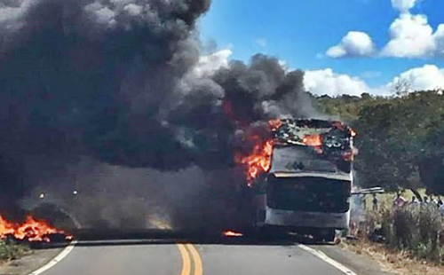 Bahia: Ônibus com dezenas de passageiros pega fogo