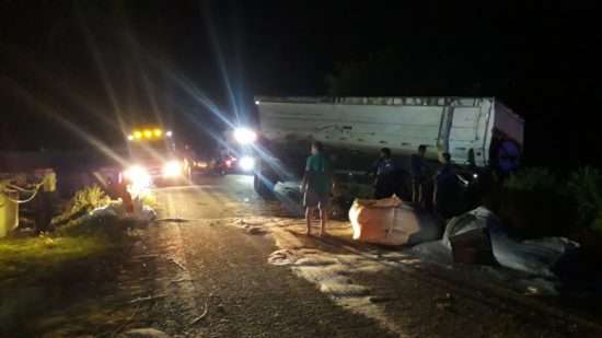 Um acidente envolvendo uma carreta bitrem e um carro de passeio terminou com uma pessoa gravemente ferida na BR 030,...
