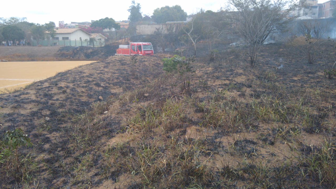 O incêndio que aconteceu numa área de vegetação próxima a uma escola municipal, no bairro Guarani em Vitória da Conquista,...