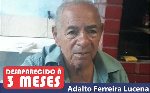 Completam agora três meses desde o desaparecimento de Adalto Ferreira Lucena, de 80 anos. O idoso desapareceu em meados de...