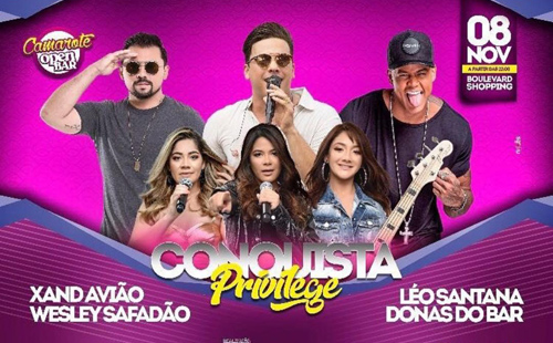 Há 6 anosConquista: Boulevard Shopping terá shows de Safadão, Xand Avião, Léo Santana e Donas do Bar