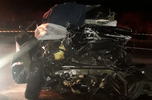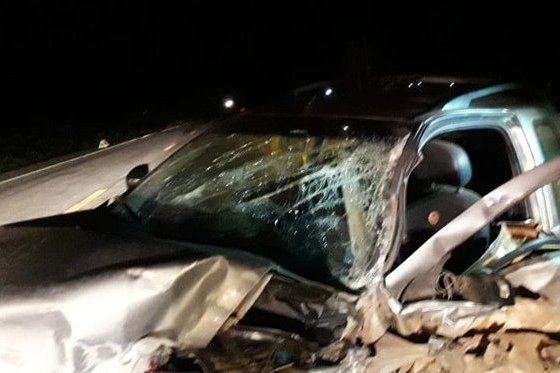 Uma batida frontal entre uma picape e um carro de passeio deixou duas pessoas mortas e duas feridas, na noite...