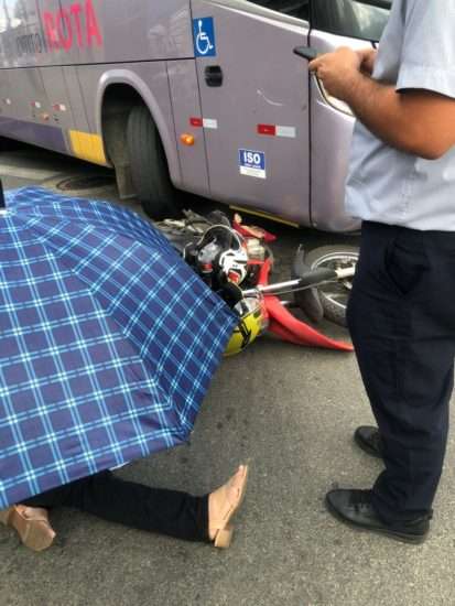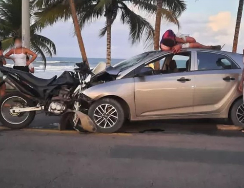 O impacto da batida entre a moto que conduzia e um carro arremessou o motociclista Laílson Santos Ribeiro em cima...