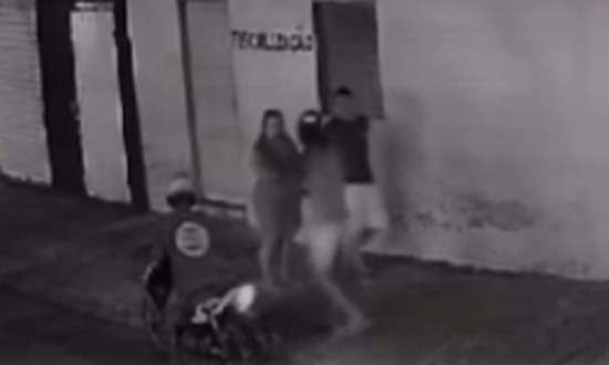 Um vídeo que circula nas redes sociais mostra o momento em que uma mulher é assaltada por dois indivíduos no...
