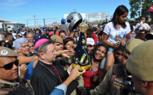 Há 8 anosConquistenses lotam aeroporto para a chegada da imagem peregrina de Nossa Senhora Aparecida