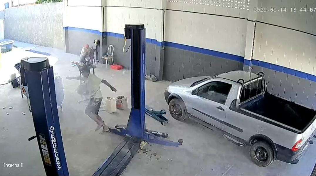 Um vídeo de segurança capturou o momento em que um homem invadiu uma oficina na Avenida Integração, em Vitória da...