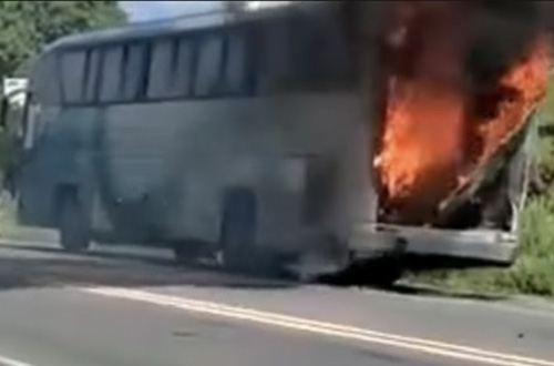 Um ônibus da empresa Camurujipe pegou fogo, na BR-101, no trecho de Governador Mangabeira, nessa sexta-feira (19). O ônibus saiu...