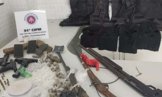 Sessenta quilos de maconha, 15 quilos de cocaína, nove quilos de crack, um revólver calibre 38 e dezenas de munições...