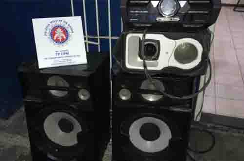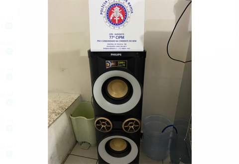 LOCAL: travessa Gilberto Lopes, bairro Cruzeiro MATERIAL APREENDIDO: – 01 CAIXAS DE SOM, marca Philips, modelo NX6 DESDOBRAMENTO: Por Volta...