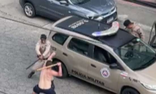Há 2 anosUrgente: Homem agride policiais em via pública com pauladas, ele foi contido, veja vídeo