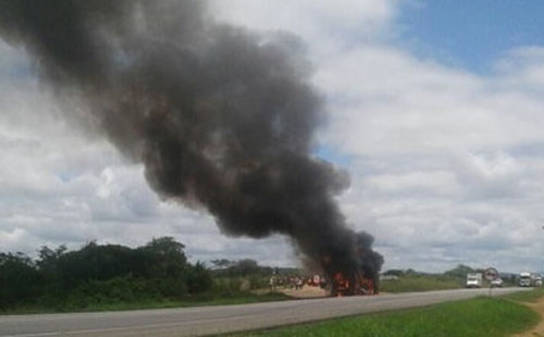 Há 8 anosCarreta pega fogo na estrada Conquista-Poções, na BR-116