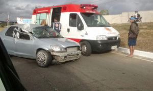 Há 12 anosCarro bate em poste na Avenida Frei Benjamim; uma pessoa fica ferida