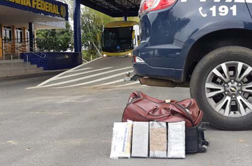 Há 5 anosConquista: PRF apreende 26 kg de maconha em ônibus de turismo, mulher foi presa