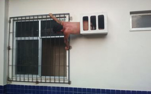 Há 7 anosPreso fujão tenta escapar por um buraco na parede e acaba ficando preso nele