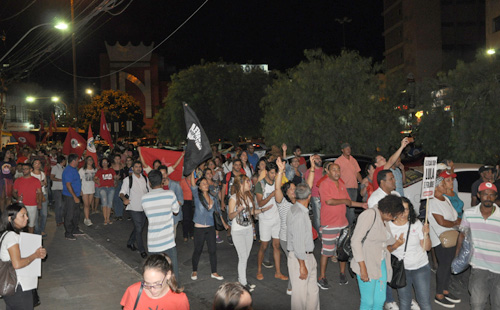 Apoiadores do ex-presidente Luís Inácio Lula da Silva ocuparam a Praça Barão do Rio Branco, em Vitória da Conquista, na...