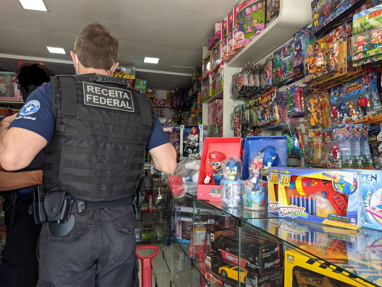 Há 4 anosConquista: Receita apreende brinquedos e produtos eletrônicos falsificados em lojas no centro da cidade