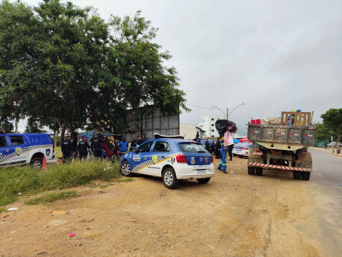 Urgente em Conquista: Prefeitura retira barracos em frente a UPA