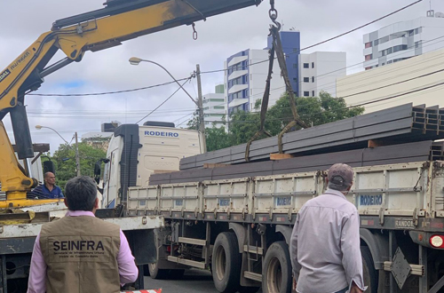 O material que estava sendo aguardado para continuidade da obra de requalificação do canteiro da Avenida Olívia Flores acaba de...