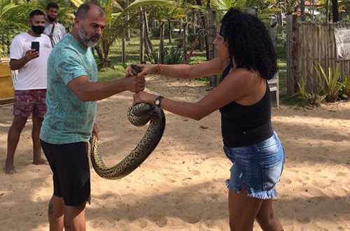 Uma sucuri foi capturada na beira da praia do distrito de Guaiú, no litoral Norte de Santa Cruz Cabrália, na...
