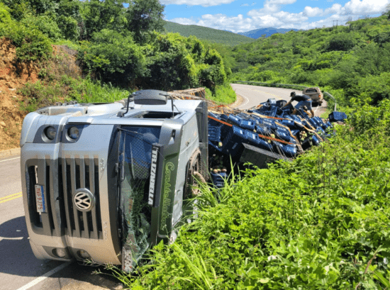 Região: Caminhão tomba em trecho da Serra das Almas