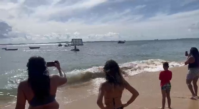 Banhistas que aproveitavam a tarde de solta na capital baiana, na praia do Porto da Barra, na tarde desta segunda-feira (28),...