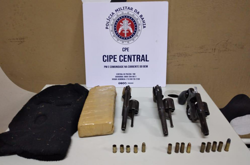 Três revólveres, munições e um tablete de maconha foram apreendidos por guarnições da Companhia Independente de Policiamento Especializado (Cipe) Central,...