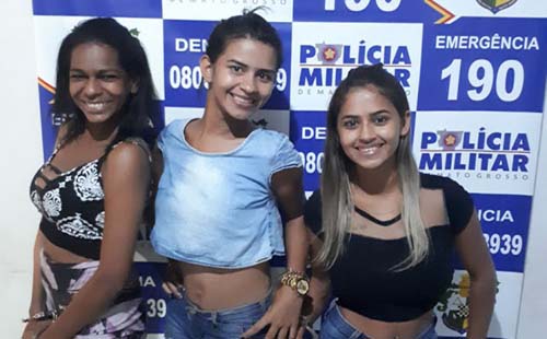 Presas por suspeita de tráfico de drogas, três jovens posaram algemadas para foto ao serem detidas em Pedra Preta, a...