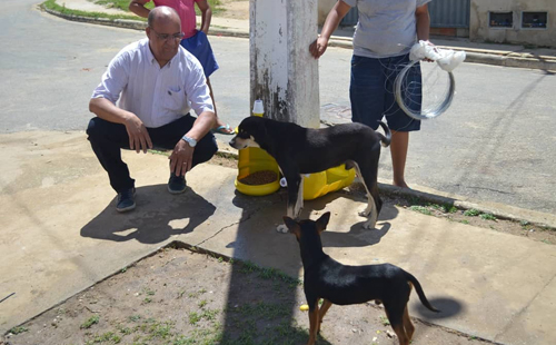 Há 7 anosConquista - Vereador instala comedouros para cachorrinhos e diz que equipamentos foram roubados: "Se o ladrão come ração pode passar no meu gabinete"